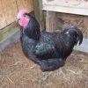 The Black Jersey Giant chicken was originated in Burlington County in the State of New Jersey during the 1880’s. A good heavy breed but slower to grow than some breeds before surpassing them in weight and size. They are slow to mature and have a poor feed/weight conversion, which explains why they aren’t popular as a commercial broiler, although they were popular in the late 1800’s for chickens for meat. It is the largest of the dual purpose chicken and eventually excels as a meat chicken and a fairly good laying hen. When grown the black feathers take on a green sheen within the black color. These chickens were admitted to the American Standard of Perfection in 1922 and both varieties (whites and blacks) are noted for willow colored or nearly black legs and toes. We offer this chicken breed in a production line and not a show line.