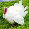 The White Broad Breasted Turkey is the most common of commercial broad breasted strains of eating Turkeys on the market today. The White Broad Breasted Turkey is also one of the largest of the breeds and generally are not able to reproduce very well. The parent stock are artificially inseminated in order to insure excellent hatchability here at Hatchery®. They also have a shorter lifespan than the heritage breeds as they are primarily bred for meat production. They have an excellent feed to meat conversion ratio and Hatchery® currently uses the bloodlines of Aviagen Turkeys, Inc. Most Americans at Thanksgiving time are sitting down to a table with a White Broad Breasted Turkey. The general White Turkey was admitted into the American Standard of Perfection in 1874.