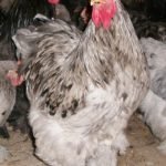 The Golden Salmon Marans (Project) rooster plumage is very different than the hen’s which corresponds to it. It is close to the brown-red plumage but it is especially very similar to the froment (french term for wheat or wheaten) cock’s. It also has a coppery finery on a black plumage background to which is added a citananon-fawn colored wing miror and not the black miror of the brown-red variety. The breast must be black with a duller black abdomen. The hackles and the lancets are coppery colored with variable tonalities (from orangery to golden-coppery shades) and possibly bordered or not with black flames. The back and the small of the back are auburn-red colored with dark and velvet red shoulders. The miror is of course fawn or cinnamon brown colored and made up of folded wing secondary remexs. The tail is black, the primary remexs are pure and black and they make the armband. The cock also has on the tail base on the rump, a tuft of ash-gray downy feathers. The hen has a hackle that is light golden colored with black tips on a salmon reddish-brown breast. This latter color is close to the gray tone around the belly underside and the tail and close to reddish tones on the thighs. Be careful, this salmon color of the breast is a fundamental mark of this genetic variety. It gives its name to the variety and allows to avoid all confusion with the real genetic “partridge” variety which never owns the least salmon tonality and which moreover seems not to exist in Marans. The coat is blackish-brown colored made up of a fine and blackish filigree on the feather. The coat shows a general warmer and brown tonality whereas that for the real “partridges”, their shades have a quite colder and darker tonality. The wing remexs as well as the tail candal are also blackish-brown with little brown dots.