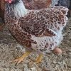 The Wyandotte chicken is an American breed of chicken developed in the 1870s. The Splash Laced Red Wyandottes are beautiful chickens that have a laced color pattern which is mahogany/red in color with light grey around the edge of every feather. Similar to the Blue Laced Red, Splash is the lightest shade out of the blues.This chicken makes an excellent pet and is good for eggs and/or meat. They will on occasion go broody and they make excellent mothers. They work well in confinement or free range and are a great back yard chicken. Hatchery® only offers at this time our production type/line not a show type. The Splash Laced Red Wyandotte is not currently recognized by the Standard of Perfection; however, several are working on getting this color recognized.