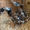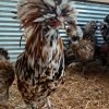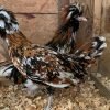 Tolbunt is a rare and beautiful color pattern that combines approximately 50% reddish-brown background color, 25% black lacing, and 25% white mottling. It is essentially a gold lace pattern with white mottling. The tolbunt Polish chicken takes many generations of breeding and presents a challenge to both create and maintain.